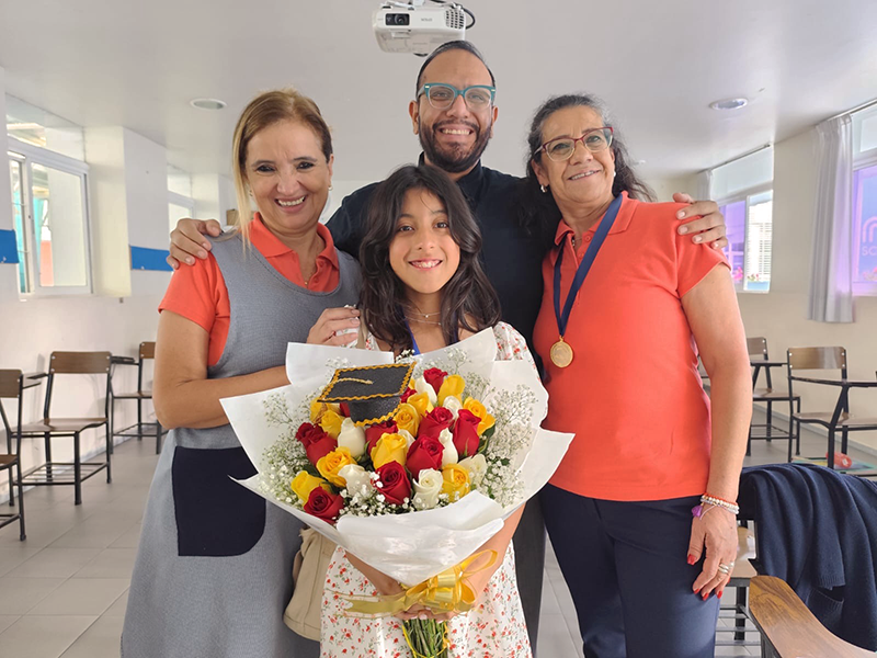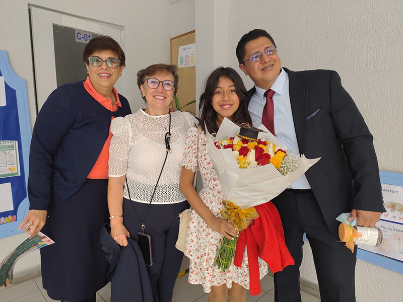 | Con Miss Vero, la directora de Inglés Rosa Elena, y el Prof. Joe. |