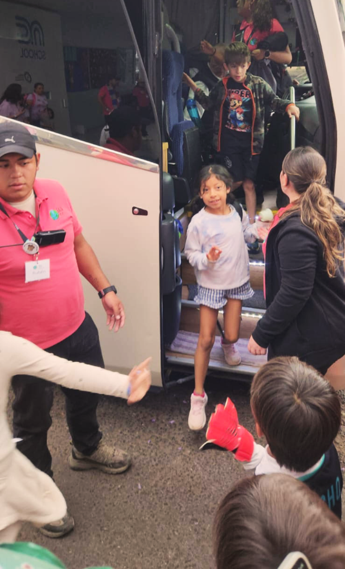 5. Rubi arriving to school from a field trip, 2025.