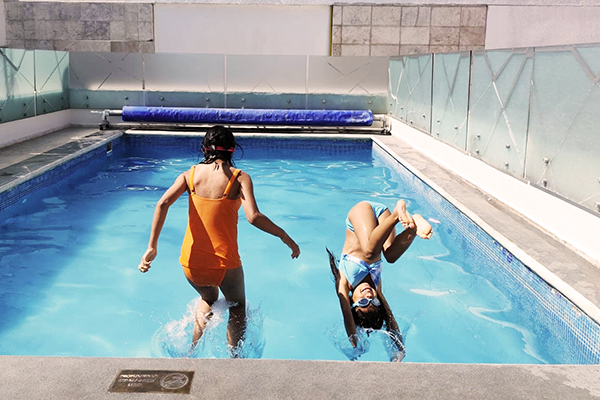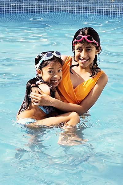 10. Mali and Rubi at swimming pool in hotel in Puebla, 2025.