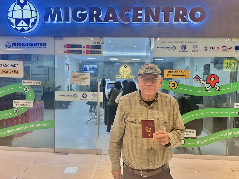 | 3. En Migracentro, Lima, con el nuevo pasaporte peruano. |