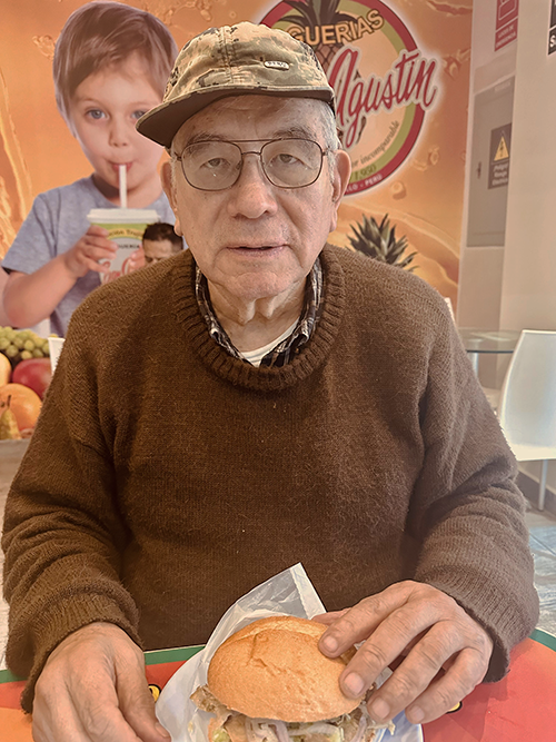 | 12. Comiendo una butifarra en el restaurante San Agustín, Trujillo, Perú, 15 junio 2025. |